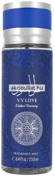 V. V. Love Distant Yearning testpermet 250ml / Lattafa Niche Emarati Al Jawhara parfüm utánzat Fedezd fel a V. V. Love Distant Yearning testpermetjét, egy 250 ml-es testpermetet friss, kifinomult és hosszan tartó stílussal. Azoknak tervezték, akik elegáns, egyedi személyiségű illatot keresnek. Illattípus: Friss - Fűszeres - Lágy fás Ideális mindennapi használatra vagy különleges alkalmakra.