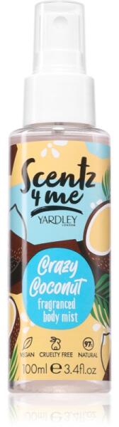 Yardley Scentz 4 Me Crazy Coconut, 100 ml, Testpermet nőknek, Ne csak a forró nyári napokon frissítse fel magát. A Yardley Scentz 4 Me Crazy Coconut testspray citrus illattal itatja át bőrét, amely energiát kölcsönöz Önnek és felébreszti érzékeit. gyümölcsös illat ideális a szabadgondolkodású nőnek friss illat meleg időre mindennapos viseletre alkalmas illat